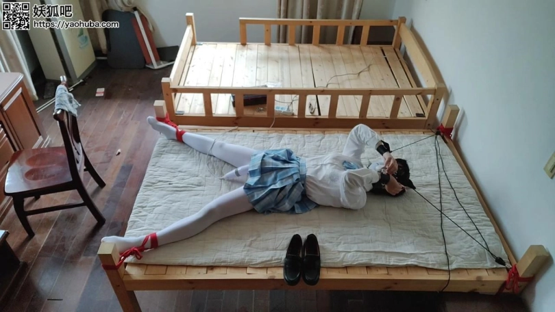 终于又可以偷空悄咪咪录自缚啦,这回是白丝jk!床上大字定时自缚!用了棒棒~