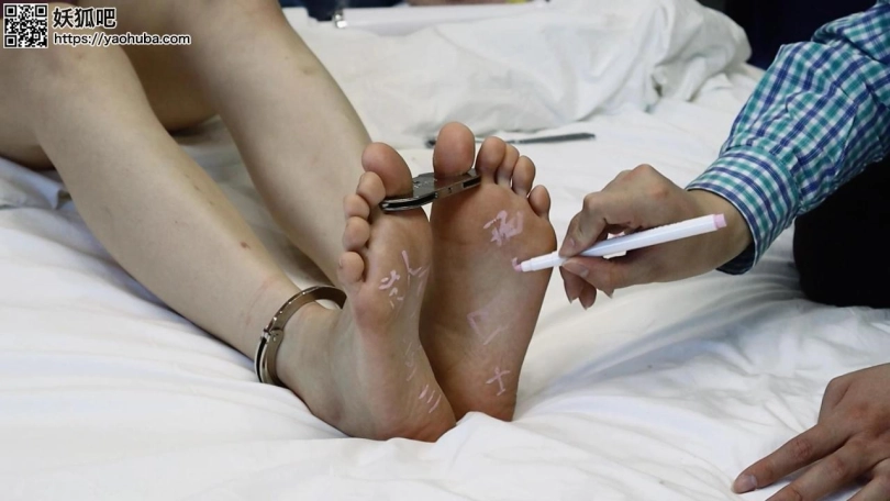 特别值得一提的是,这个妹子的手脚太好看了,这双脚是我见过最好看的一双,白嫩嫩的不说,一点点毛病都没有,一点死皮茧子也没有,脚指甲修建的也很好,摸起来手感太好了!!!挠脚心TK安排上,还挺怕痒,可爱的小妹妹被滚轮瘙痒和棒棒的刺激下不断挣扎,不过浑身都被铐着,挣扎也是徒劳,像极了案板上待宰的鱼肉哈哈哈!!!同时也尝试了滴蜡和脚底板写字,在妹子的脚底板上写字太好玩了!!!