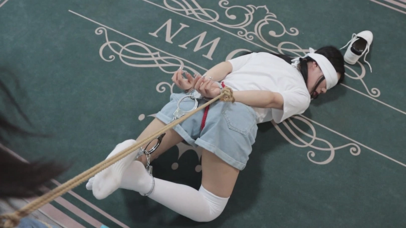 言归正传,这次双人本选用的是绮梦搭配青岚的反差组合,娇小、衣着偏可爱但性格强势的姐姐绮梦与高挑、衣着性感但性格弱气的妹妹青岚,这种对我来说处处充满反差的组合十分戳我的xp,我也热衷于塑造这种反差感十足的角色,毕竟常规一旦发生反转那么爆点也就应运而生,嘛~虽然很可惜内衣部分要在下一集出现,但这一集也不会让你们失望,这个姿势也是一个创新,青岚立棍垫脚站立,站在指压板上受苦,然而股绳却被前方驷马的绮梦牵拉着,绮梦需要向前去触碰青岚的鞋子,但越是挣扎就越会刺激到青岚的股绳,当然还有绮梦自己的股绳,而让堵嘴者指挥,让蒙眼者行动也是个比较恶趣味的小障碍,当然,开胃小菜罢了,让各位白棉同好先解解渴。