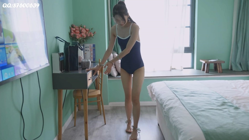 妹纸第一次带镣铐,之前从来没见过,试了试后感觉挺沉的。修长的大腿和纤细的手腕和镣铐很搭配。驷马拷后,[X_X]的挣扎也很真实。