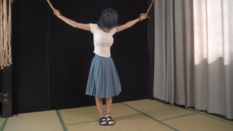 【象人】嗷嗷-蓝色长裙,白袜凉鞋,大字型捆绑TK,袜子塞嘴,td震脚底