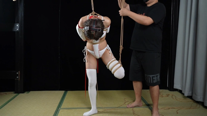【象人】小0-女巫服死库水+过膝白丝,简单的折腿吊缚+V字极限驷马!