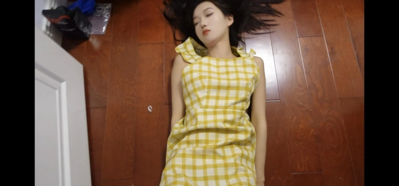 男主开门进来,看到女主吃了一惊,摸了摸女孩的脚,说道:“还是热乎的,还活着,不过这妹子躺在地上一动不动的是啥情况啊”说着男主掀开被子,之间女主恬静地闭着眼睛,双手十指相扣叠放在小腹上,好像睡着了。(镜头特写两分钟左右)然后男主用手同时翻开女主的两个眼皮(脸部近距离出现在镜头中),发现她目光呆滞,说道:“不像是下了药的,看起来是被打昏了,看样子还挺严重,完全丧失意识了”说着男主松开手,女孩的眼睛自动闭上。然后玩弄了一会她的手指,然后抬起女主的腿玩弄,并且玩弄了女主的脚,女主还是一动不动,男主又拽起女主的手把她拉起来使劲摇晃,女主还是没有反应。男主就把女主放到沙发上躺着,让女主的头靠在男主腿上,反复拍打她的脸,摇晃她的身体和腿,但是女主还是不省人事。男主拉起女主的手,看了看她的手表,说:“时间还早,我还是继续玩一玩,给你拍几个照留个纪念”然后男主让女主瘫坐在沙发上,翘着二郎腿。(镜头给特写两分钟,并且有半分钟的脚部特写)然后男主又把女主放到一张长桌子或者茶几上平躺着。(镜头特写两分钟,半分钟脚部特写,如果没有长桌子或者茶几就把女主放在地上)然后男主又把女主搂到怀里继续玩弄了一会女主的手,然后又抬起女主修长的腿把玩,并且抚摸她的脚。最后又把女主公主抱起来走了几圈(期间女主头无力后仰,体现出昏迷的真实感)然后放到床上。女主十指相扣叠放在小腹上,仿佛睡美人。(镜头特写两分钟)男主说道:“真是的,送个妹子陪我就算了,送个晕了的妹子不晓得是几个意思,我检查检查,万一出啥事就麻烦了”然后男主反复拽着女孩的手,把她拉起来摇晃,女主还是没有反应。男主又摆弄女主的手,然后抬起她的腿玩弄。然后男主又将女主翻了个身,让她脸朝下趴在床上。(镜头特写两分钟,脚半分钟)男主说:“看起来没什么问题,我过会再接着玩你吧” 说着把女主放到地上,然后拽着她的脚,把女主拖到客厅,然后把她放在地毯上躺着,一只手搭在身上,一只手放在地上。一分钟后,男主让她十指相扣叠放在小腹上,拿起被子盖住女孩的脸和身体,只露出小腿和穿着凉鞋的脚,和开始一样。