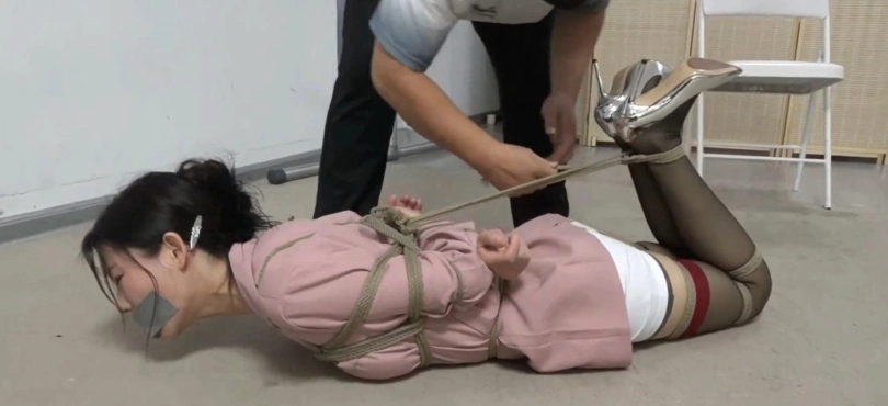 英子(柳洋饰演)被欧阳乐用胶带捆绑起来之后,这才意识到事情似乎有点不对劲,面前的这个人似乎不是公司的员工。这个时候,欧阳乐才露出了真面目,他更加放肆的玩弄着英子的身体和丝袜美脚,并趁人不备,将英子从公司里带回了自己的住处,并换成绳索将英子更加牢固的捆绑在了椅子上,这样一来,上次更衣室的一箭之仇就算得报了……