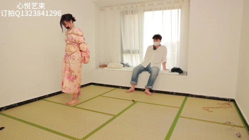 【心悦艺束】和服紫萱,日式后手,镣铐行走,玩弄玉足。
