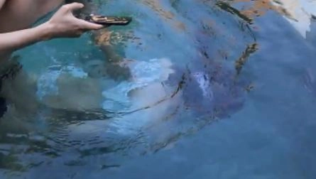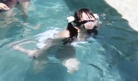 这次和上次不同。是把茶茶整个身体都丢进泳池里,手脚绑在一起的情况下没有任何可能踩得到地板~