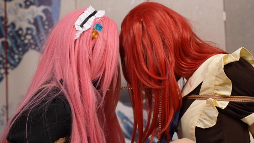 第一部分是喜多被绑在柱子上,波奇酱想来解救她结果自己反而被吊缚起来。然后两个人一起被带上玩具折磨。