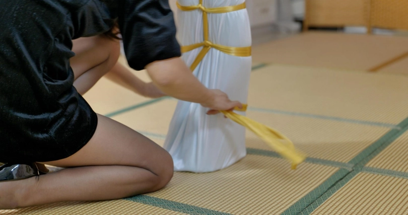 【王丽】里面丝绳捆绑,外面三层丝绸袋全包,再用丝绸袋绑全身,蹂躏男M