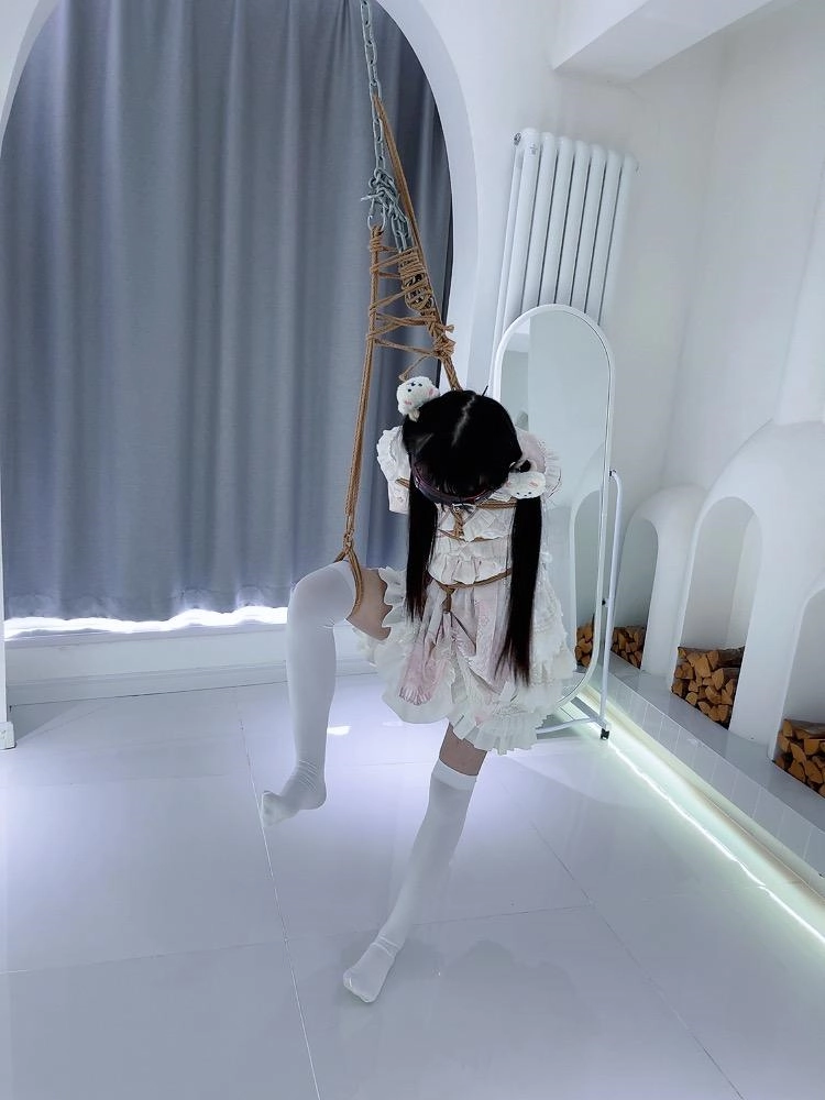 内容:把lo娘茶茶单腿吊缚,只能脚尖着地。这次单腿吊比常规单腿吊严厉一些:上胸绳承重微微左倾,配合单腿前吊很难直起腰来。然后把茶茶吊起到只有一只脚的脚尖能触碰到地面,另一只脚单腿前吊。这种情况下如果想让脚尖压力小的话,左倾承重的上半身就会把大部分体重勒到一侧大臂上,且没有任何其他可分担重量的姿势,看起来平平无奇其实手臂需要承受大量痛苦,超 虐~