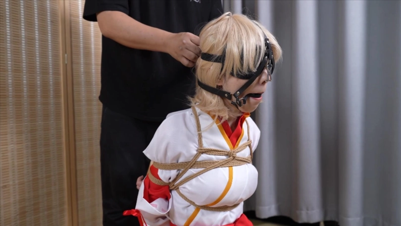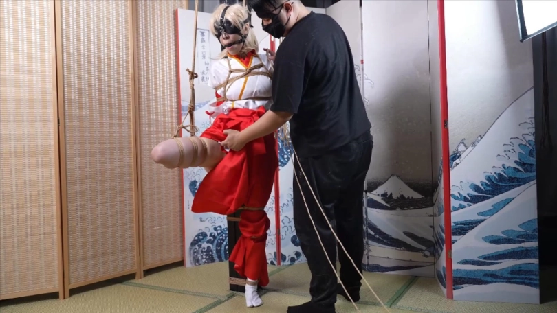 【象人】4K 嗷嗷-cos巫女花散里(npc)马具口塞,鼻勾,折腿缚,细绳扯脚趾