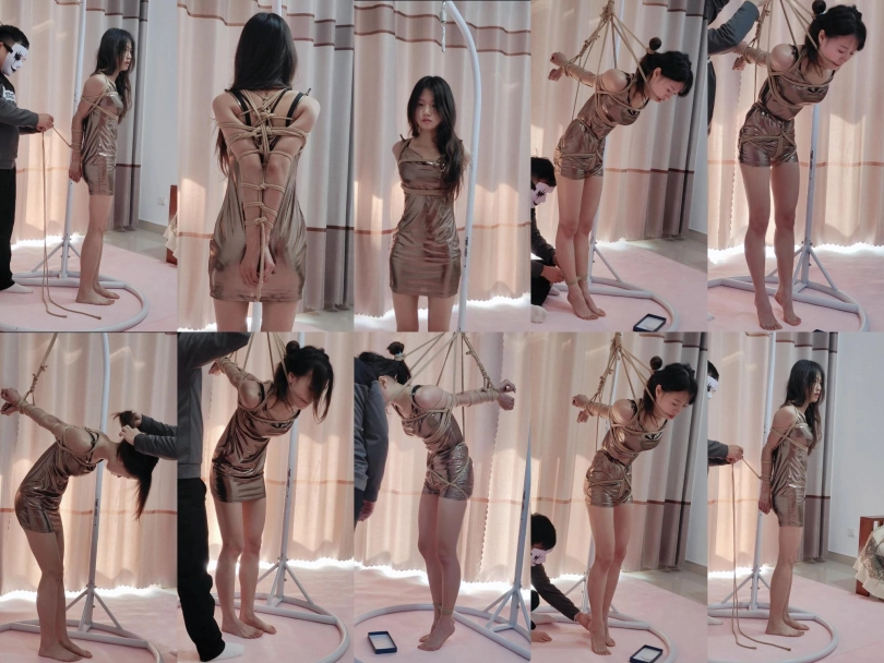 【素人】小姐姐挑战欧式直臂股绳吊绑极限脚尖着地放置全过程勒紧头发嘴巴超级难受坚持到快哭了才解开(受力点股绳一根绳)