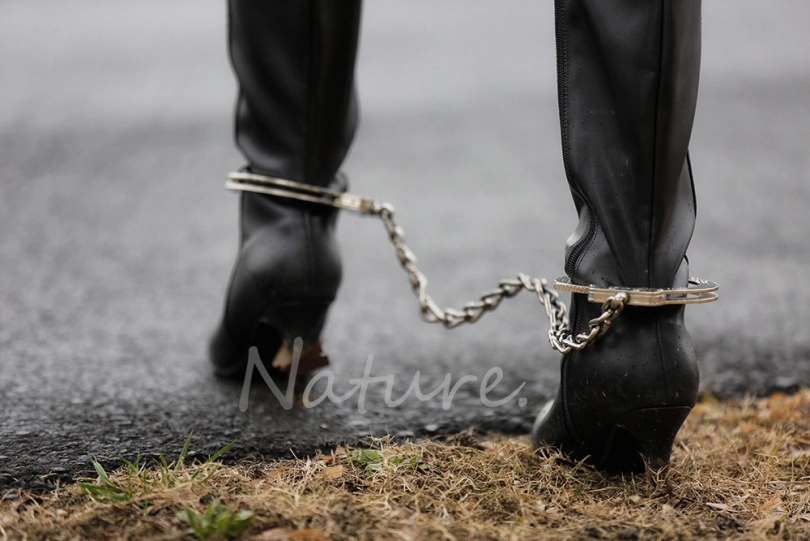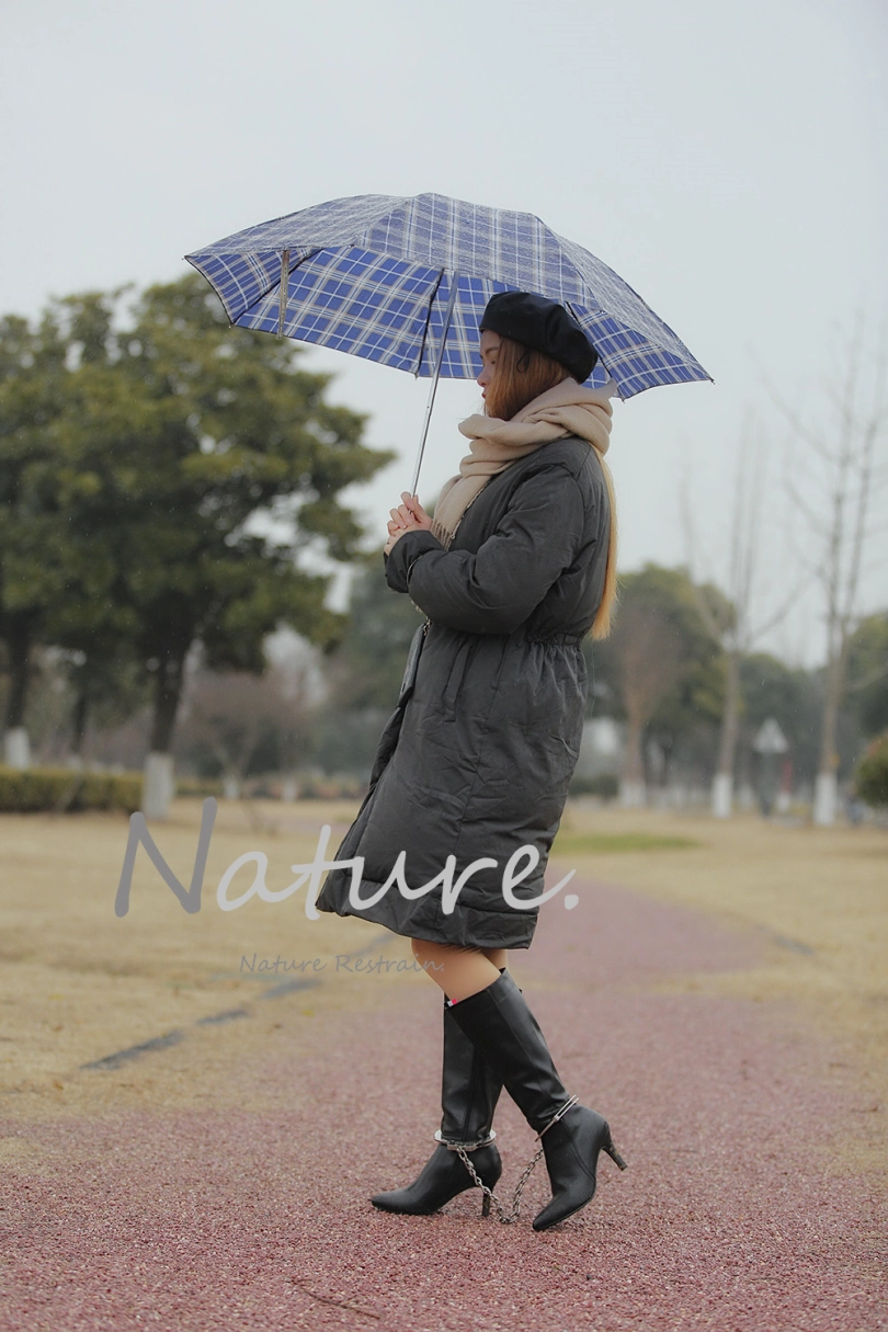 冬季的江南还是挺冷的,原本以为小妹不敢在公园里玩镣铐,事实证明是我想多了,妹纸不但无所谓,而且碰到行人也不怕,倒是我这个摄影提心吊胆,哈哈。起初用了短链脚铐,妹纸嫌短迈不开步子,于是换了副长的。换下来的短的就当手铐戴手上了,还挺合适。可惜天公不作美,拍着拍着就下雨了。