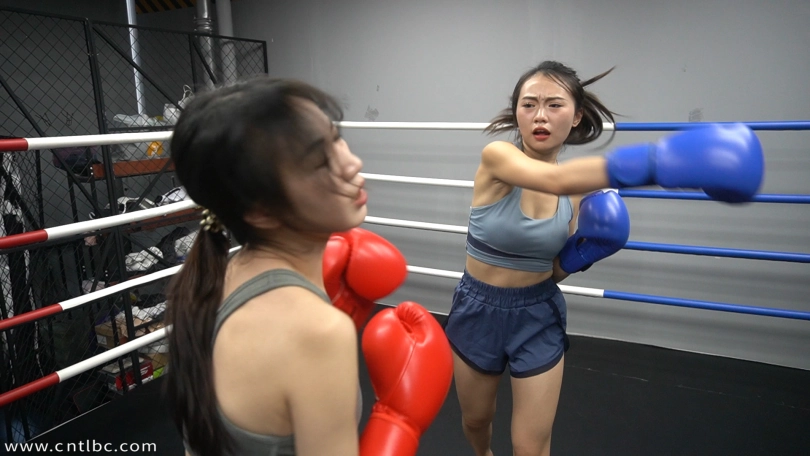Xye (red gloves) and Ffan (blue gloves) were two new boxing girls.