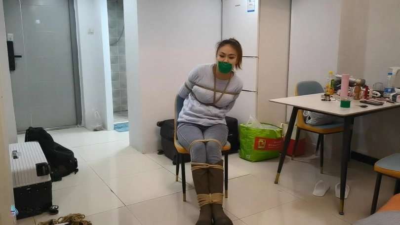 医生将女孩捆绑在椅子上,用一团布塞进女孩的嘴里,外面用胶带封堵。放置在一旁。不断的抚摸女孩的敏感部位。接下来将女孩单腿吊起来。鞭打着女孩,用TD放进裆部,不断刺激着女孩。脱掉女孩的一只靴子,玩弄她的脚心,在多重刺激下,女孩开始轻微的呻吟。。。