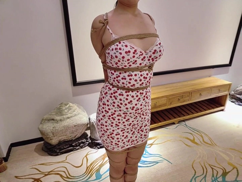大胸妹一条的视频,经过几次绳缚拍摄,一条已经越来越适应绳艺,渐渐爱上了绳缚的感觉了。所以这次穿上她喜欢的红裙子,试一试最近很火的爆杀流紧缚看看是什么效果。
