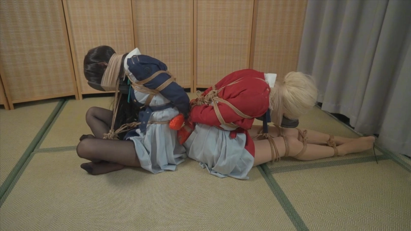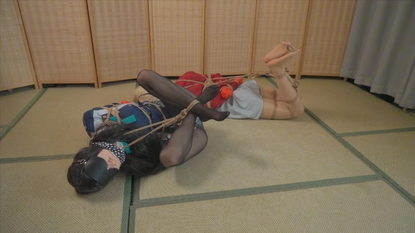 但是被人从身后击晕,随后歹徒把两人分别海老缚+驷马捆绑起来