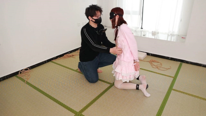 小眠妹妹被戴上手铐脚镣,限定在房间的6块地板的范围里。不允许跑出这个范围,只能在这个范围里面躲避老白的挠痒咸猪手。挣扎的过程憨态可掬,非常可爱。