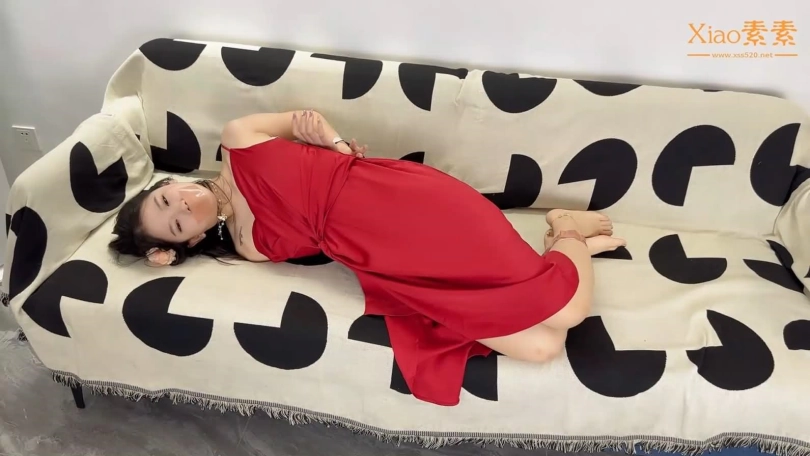 红色连衣裙的美女佳佳,被暗恋的小坏蛋绑架,绑在房间里独自欣赏。