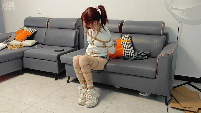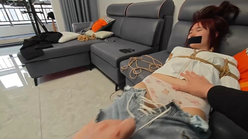 小眠是一个上班族。突然有一天,歹徒踩好了点 确定只有一个女孩居住,小眠出去上班,到了晚上下班了,债主偷偷得潜伏在暗处,一直尾随到小眠回家,开门得一瞬间债主动手了,用手捂住小眠得嘴,并关上了门,抓着小眠,给他推到了沙发上 并捆了起来1(日式后手+蛇缚)。歹徒询问小眠家里有什么值钱得东西,小眠不肯说,于是 准备惩罚小眠,把小眠用胶带(嘴巴长度就行)堵嘴了,接下来把小眠放置在了一边,于是歹徒管自己去搜钱财,文文小眠趁此在脱束准备逃跑报警,可歹徒什么都没有搜到,于是想到了小眠得手机里面有钱,歹徒回大厅准备询问手机的支付密码,可正好直接贴脸了,逃脱得小眠逮个正着,歹徒怒了,把小眠重新捆绑1了起来,并蒙上了他得眼睛,并脱他们裤子,询问了一会手机密码,见小眠不肯说 歹徒让小眠带开口器,然后压着小眠去了大厅绑成了走绳的姿势,来回走绳。后面逼供无果 歹徒觉得不过瘾,把小眠得内裤掀开塞入了一个最大档得TD(此时还在问小眠爽不,再不说就让你们更爽)此时,小眠的口水疯狂得再留。刺激了一会,见小眠还是不肯说,先把小眠得开口器拿了下来,然后把小眠得[X_X]拿了出来并把小眠放了下来,把腿松绑了(手还是绑着得),“爽不,不说好办,那就接着玩”于是压着小眠去了房间,用站立铁架束缚住,流口水。