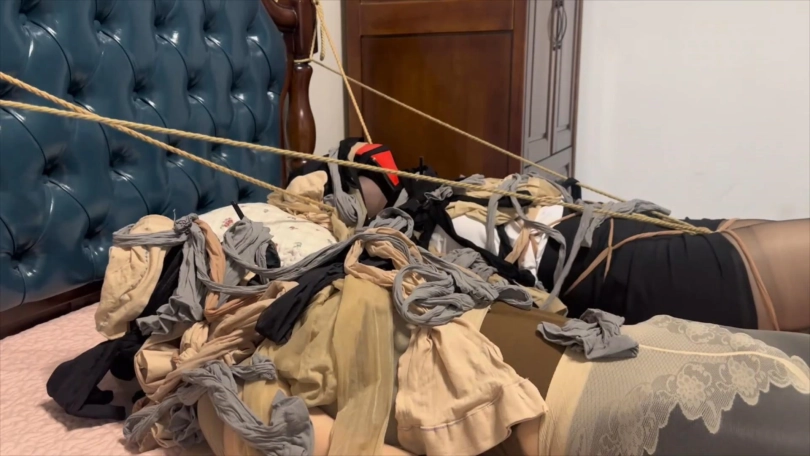 然而这确实是一场噩梦,吴晗根本没有从那场事件中逃出来,她与那个女人都被丝袜全包衣包裹起来,无法逃脱。原来女人的同伙也没想过让她逃跑。看到昏迷过去的女人,吴晗自知自己也凶多吉少。最终她们俩脸对着脸,胸对着胸被丝袜绑在一起,永远地囚禁起来。