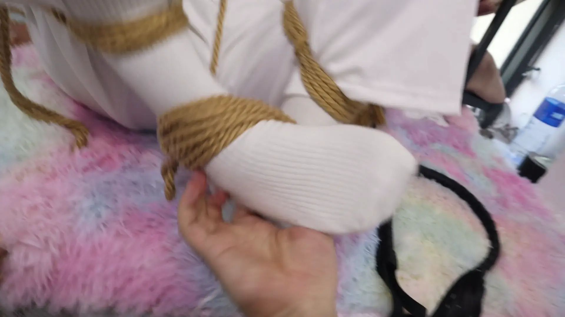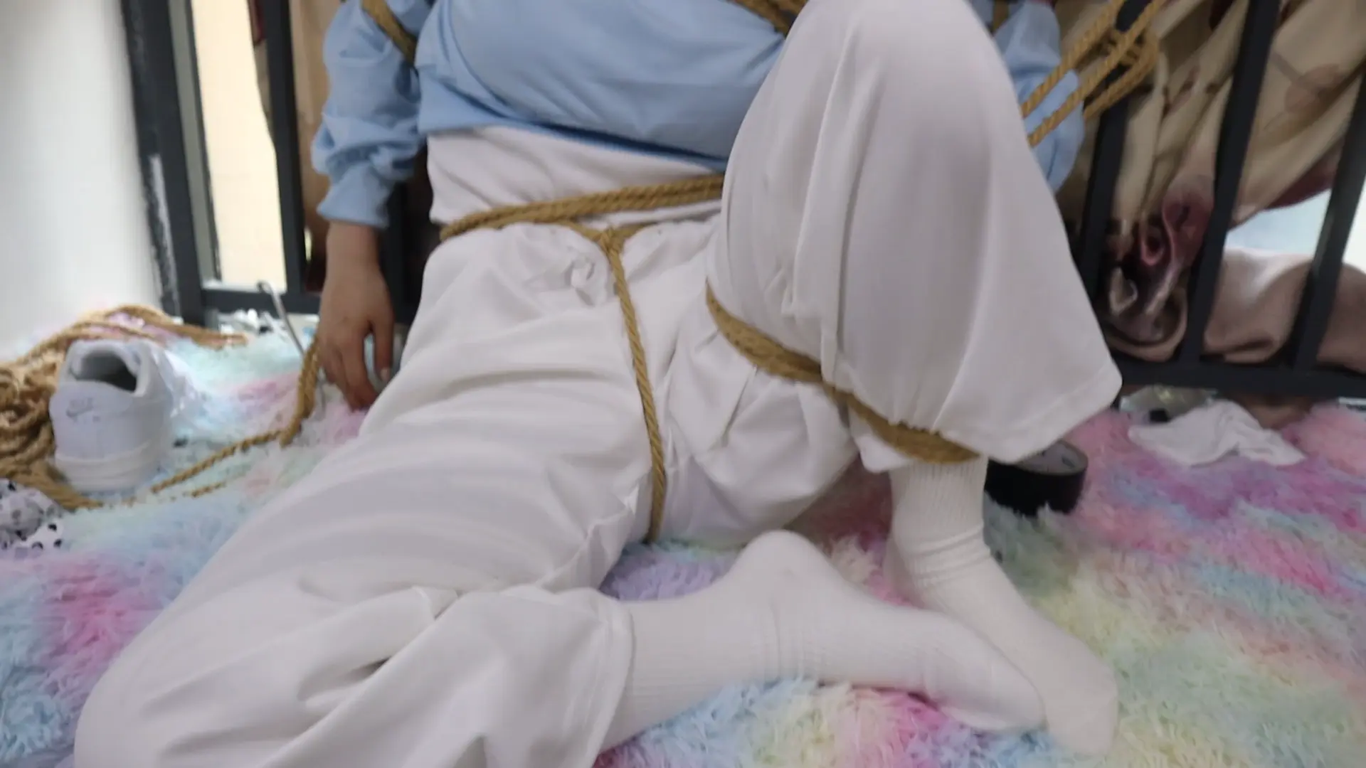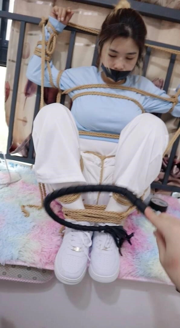【荷约少女】刚烈女孩H好久不见,一见面就死死的加股绳绑在栏杆上,拿的长鞭打狠狠的抽打,拉股绳听到喘息声加打 打的越狠教的越惨一开始被打的翻白眼、不过看你的表情你一定也很舒服吧,脱下鞋子玩白袜脚之后t