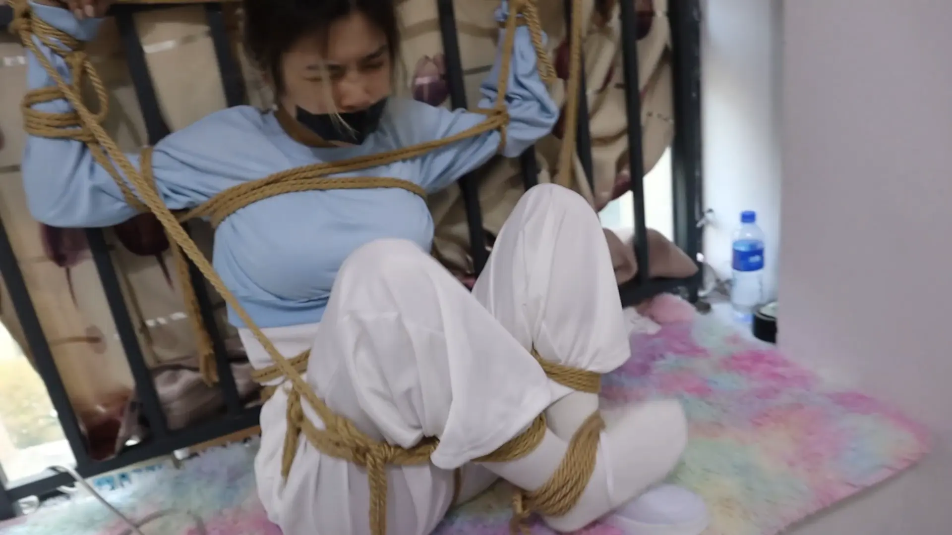 纯干货剪掉多余捆绑和解绑动作 刚烈女孩H好久不见,一见面就死死的绑在栏杆上,堵上嘴巴,