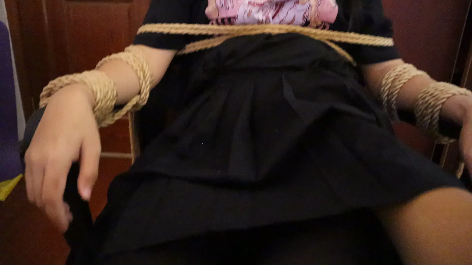 【荷仙少女】 女王派学姐A的黑丝美腿翘起来了,手里还拿着鞭子打向自己的身体,麻花辫子玩着玩着就被捆到椅子上搞了,脱下皮鞋玩脚玩弄敏感腋下可怜的学姐被玩到大声呼喊起来但被胶带封住呜呜呜叫,并且强迫学姐数
