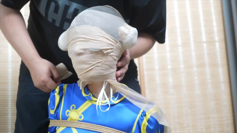 歹徒安排好一切后,把两个人双手包起来,头戴上丝袜用胶带把嘴巴和眼睛缠好