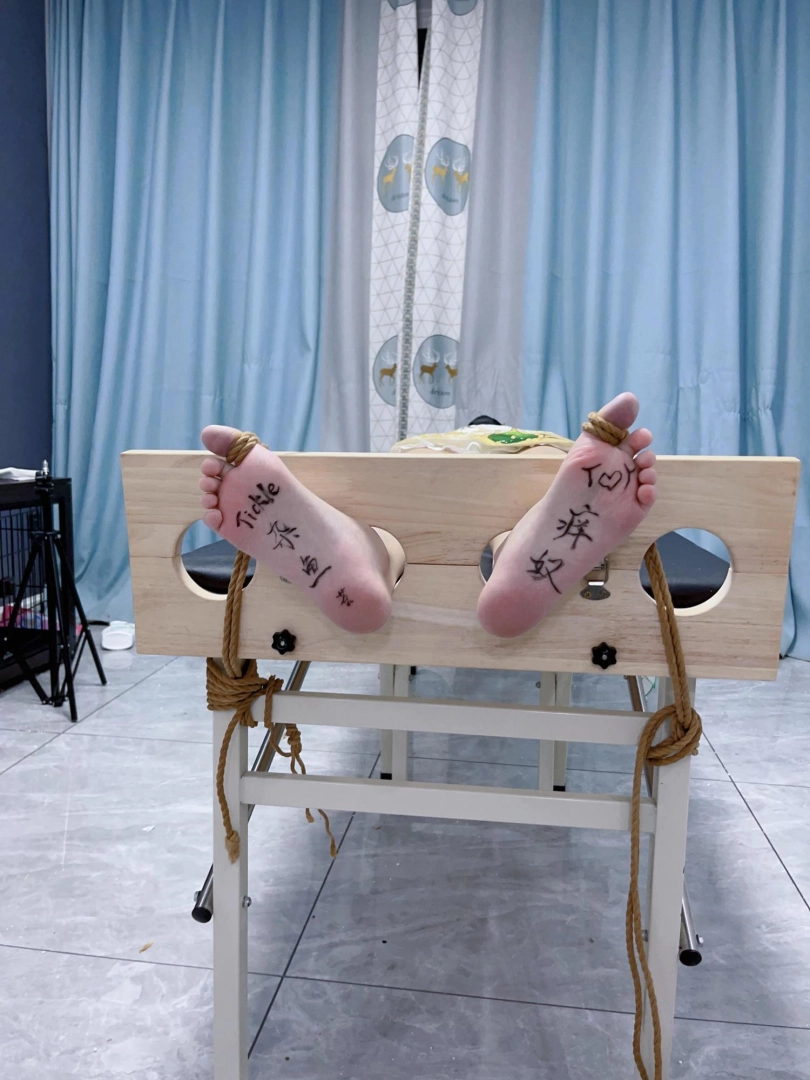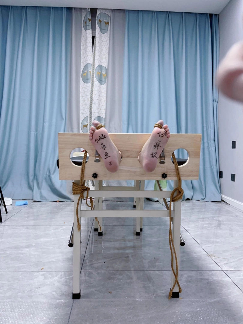 姿势:痒刑床+足枷(一定要固定脚趾)