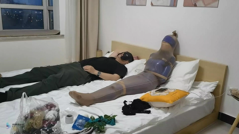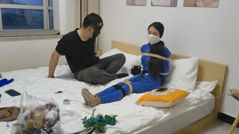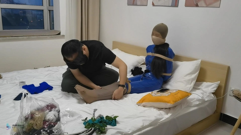 【JS】【宫怡】蓝胶衣丝袜捆绑堵嘴胶带封堵口罩丝袜头套全包鞭打挠痒