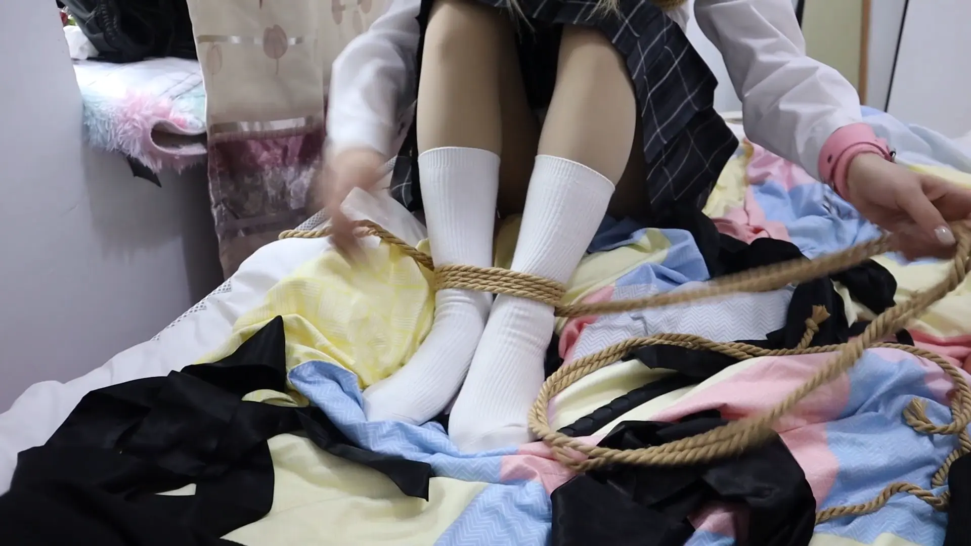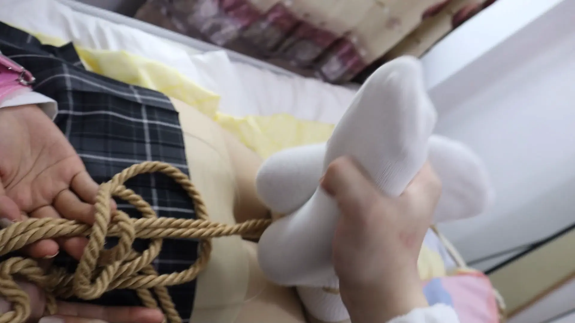 【荷仙少女】又见少女H鞭打挠到抽搐 帆布鞋长筒棉袜+简驷马缚+塞嘴+封嘴+鞭打虐待+驷马挠+最后女孩H旁白讲话,强行把布条完整塞入少女H嘴里塞满并用胶带封住,双手粉铐撩绳子拉住脚上的绳子弯曲腿部,使劲