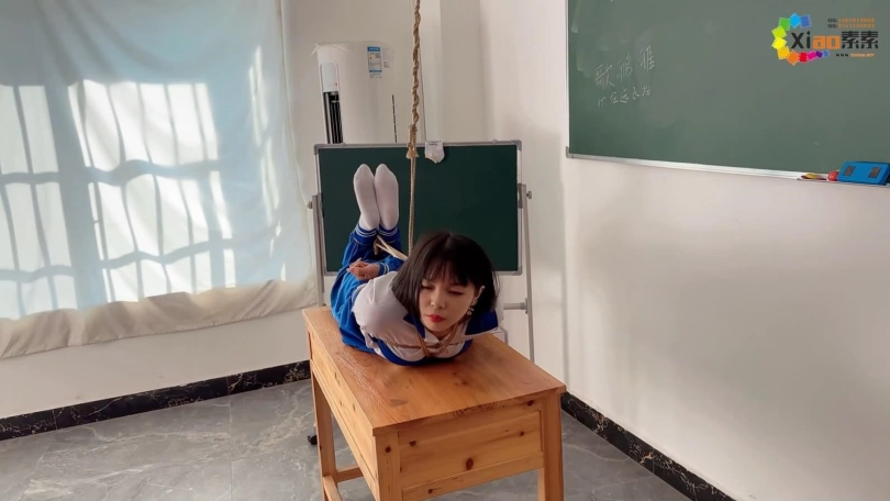 校服白袜小学妹思思在教室里被老师用棉袜堵着嘴,紧紧绑着,接下来又被驷马捆绑,口球堵嘴,这还不算,还被迫闻自己穿着的袜子。