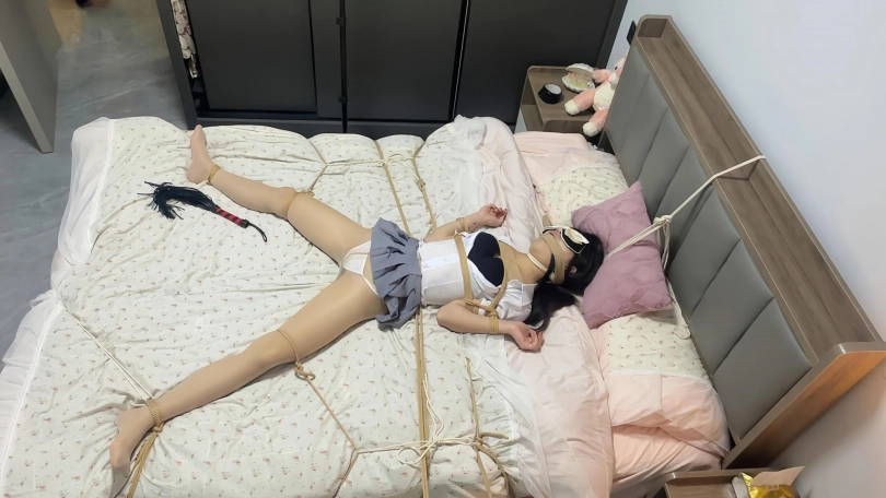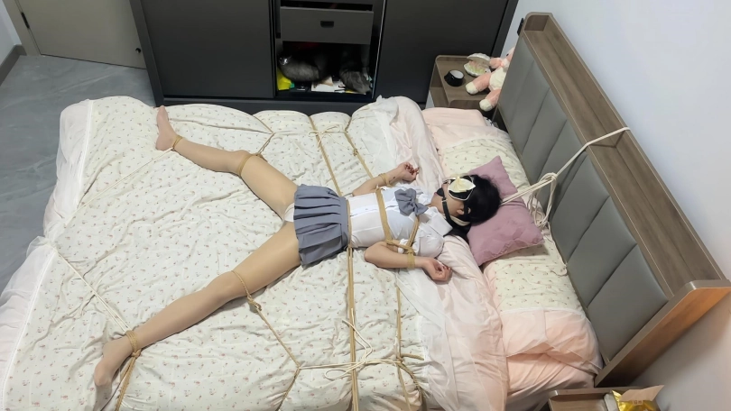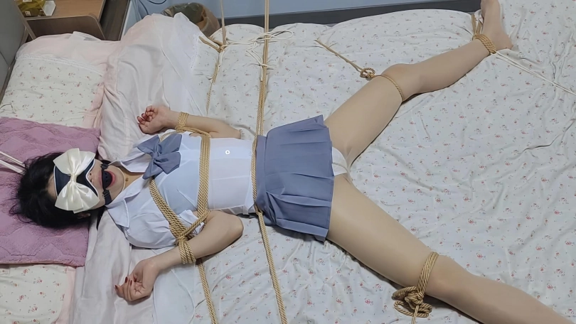 这次带来一种完全无法动弹的床上固定绑法,从脖子开始,头部,然后手折叠,然后腰部固定,再然后大腿拉升固定,最后是脚的固定,这样一套操作下来是真正的无法做到剧烈挣扎的行为了,只能呜呜呜的咆哮和喘息,当然再加上筋膜枪的威力,丫丫很久都没有达到这样的效果了。。。