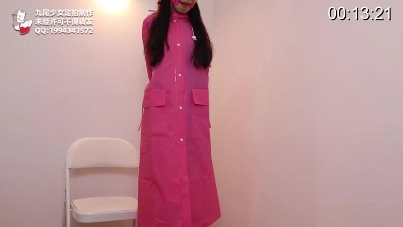 【九尾少女】白丝死库水雨衣胶带拘束,死库水龟甲缚捆绑,胶带多重拘束挣扎