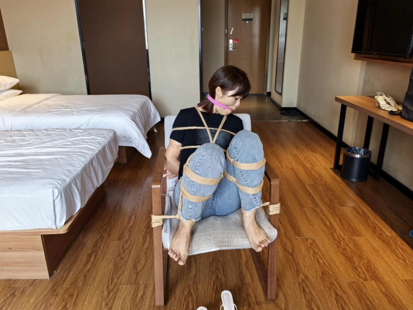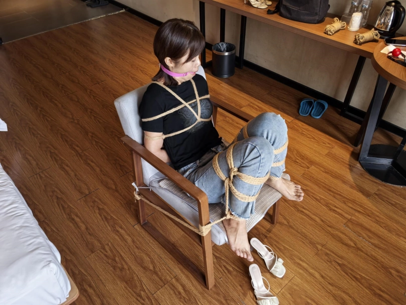 给绑了个简单文文日式加M腿,戴上口球后可以看出来是有点害羞的,手脚都被绑着固定在凳子上,又不能遮挡怕口水流,还是挺有意思的。