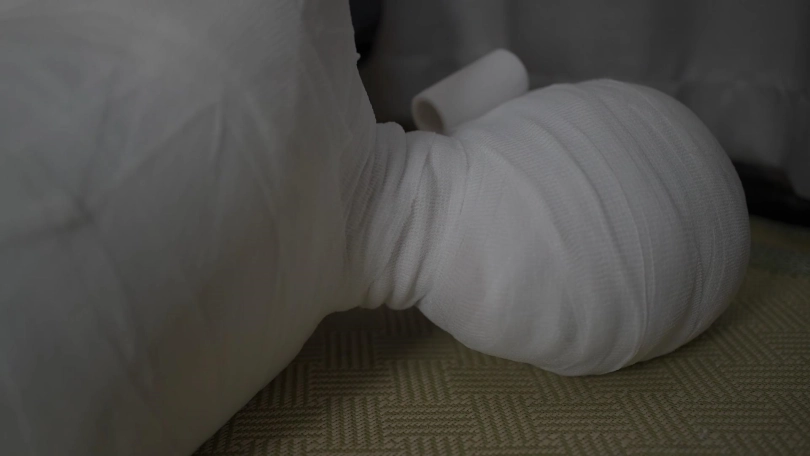 每个胳膊,每一条腿都要缠好以后,再开始整体的全包