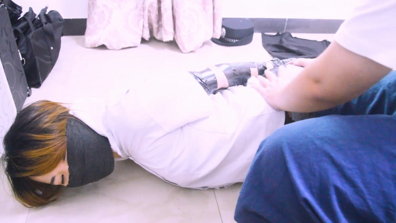 【逍遥】《创意女警陷阱01》超罕见的奇幻捆绑!黑丝女警被有生命的胶带紧紧捆绑 30多道胶带超密集拘束