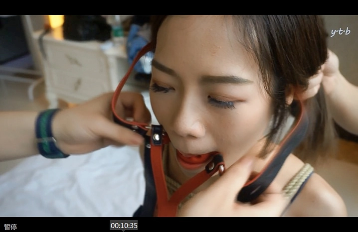 模特尝试马具口球拍摄,坚持不了一会儿就想吐,当然没那么容易放过她啦!