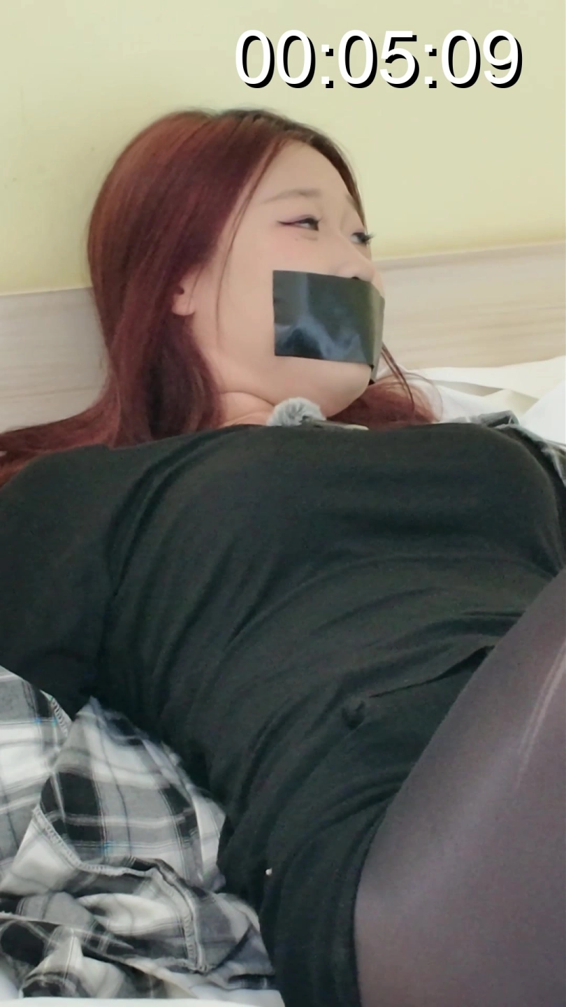 黑丝大长腿的琪琪被入室绑架,两种胶带轮番封嘴,奋力挣扎呻吟,演技超在线