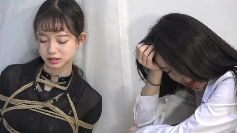 (花琪,珊珊,最开始塞口球,后来询问的时候把扣球摘下来挂在脖子上)