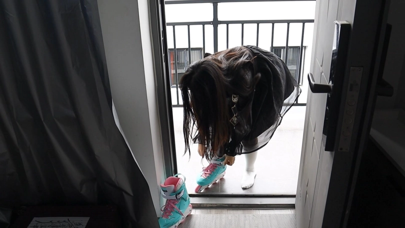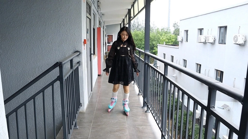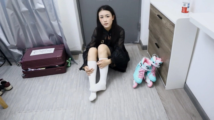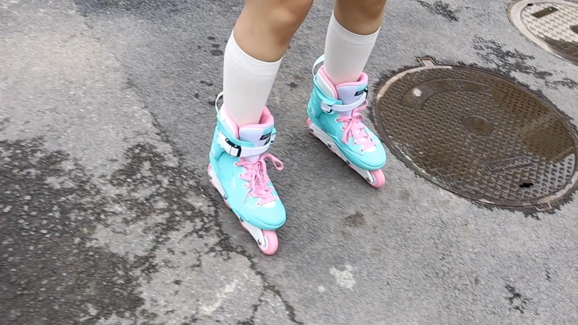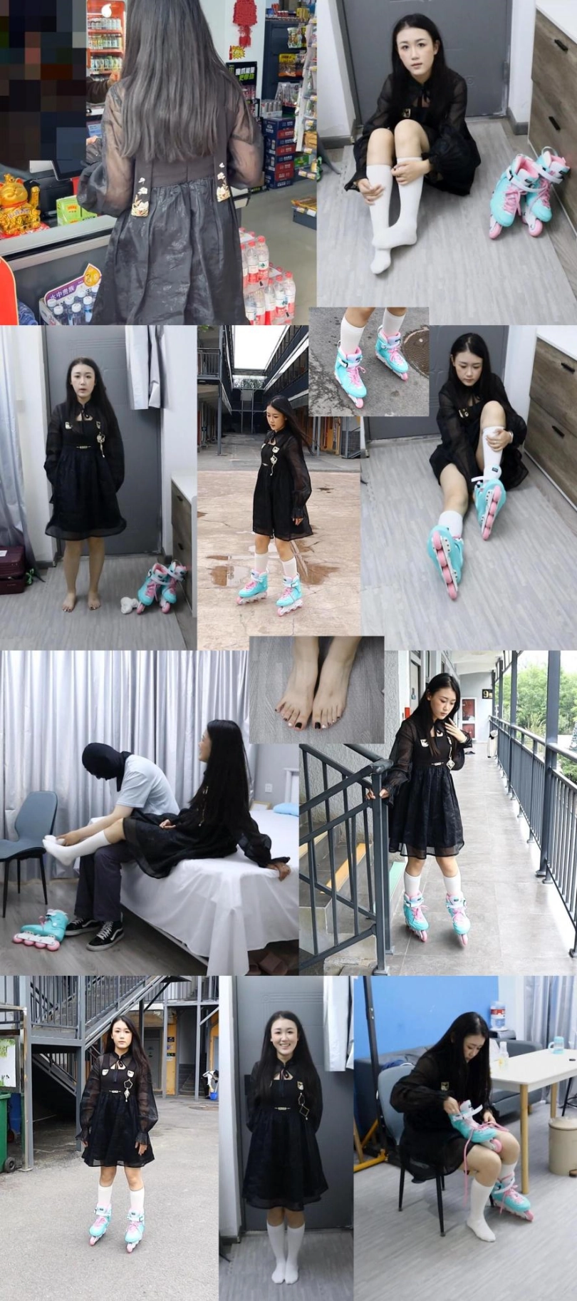 【趾间艺束】家教老师可儿轮滑户外玩耍挠白袜脚TK 白袜轮滑鞋为主!