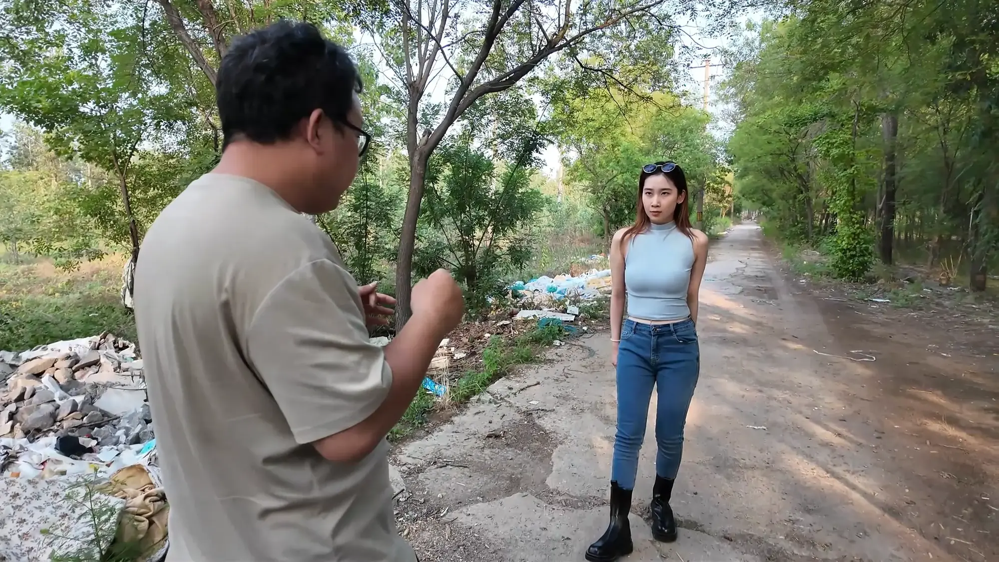 危机时刻,三人背后突然传来声音,夫妻两人惊恐回头,原来是一位路人(南清扮演)偶遇他们问路,雨诺本想回头却被女人一把甩了回去,并掏出刀子对准雨诺让她不要乱动,夫妻两人背对着南清简单商量决定不要节外生枝,打发几句让她离开。男人支开南清后两人继续压着雨诺走。南清走了几步察觉到不对劲,于是回头叫住三人故意说自己没听清,气急败坏的男人呵斥南清不要啰啰嗦嗦,雨诺抓住机会顶开了米粒,大衣也顺势脱离,想逃跑却被再次控制住,见事情败露米粒让男人将南清打晕也一并带走。却不了南清是一位跆拳道高手,很轻松的就把男人打翻在地,她跑向米粒将她按到在地,但这时男人已经跑到她的身后掏出枪对准了南清的脑袋,南清只好投降。男人命令南清双手交叉背后蹲在地上,一旁的米粒站起身表示绳子不够用了,先绑个简单的花式,用镣铐先控制南清的四肢,回去再好好绑起来。南清与雨诺在两人的推搡下被带进了车后备箱,为了防止两人不老实,夫妻俩先后将她们捂晕,并戴上眼罩和口罩,最后开车返回住所。