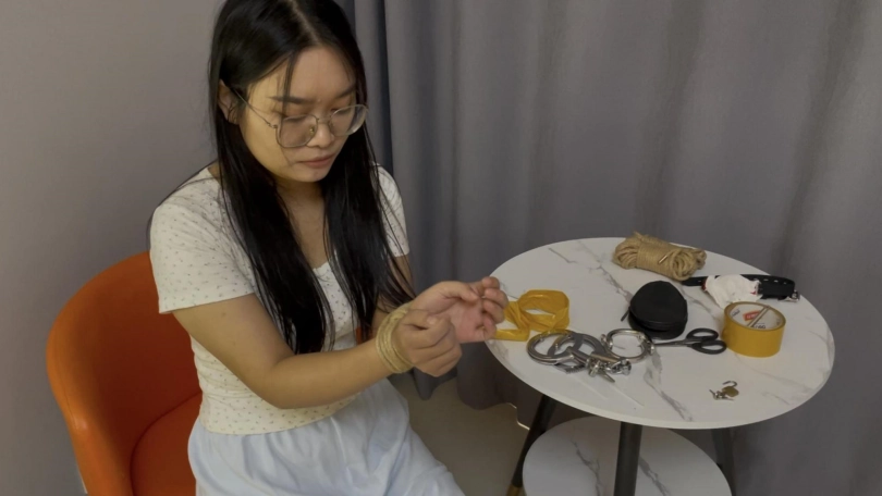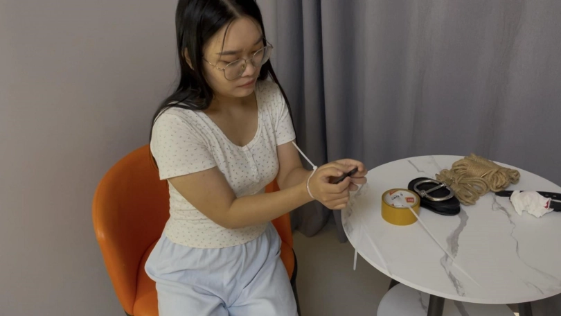 第一次过来的妹子肯定要让她们体验一下所有道具,并说出感受如何,这妹子还是有一点点紧张的,特别是戴上手铐之后,整个人都发抖了,挺有意思哈哈哈,绑上日式加口球,感觉她内心想法更复杂了。