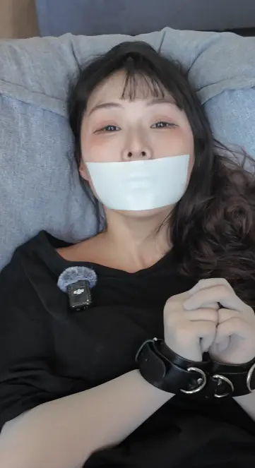 与姐姐真实的tj,典藏系列,姐姐穿着超大T恤,底下真空白裤袜,搭配灰色手丝,泡棉胶带封嘴,束缚带捆绑,手动墙糕,挣扎与娇喘的极致体验