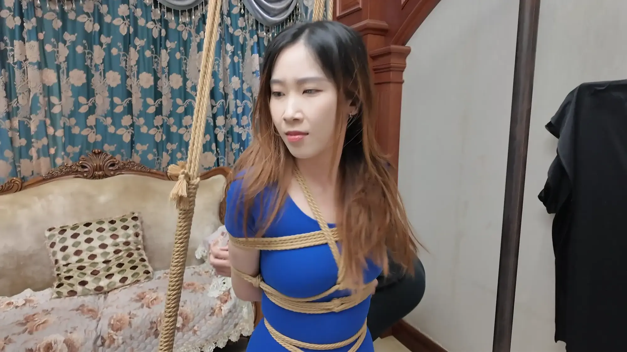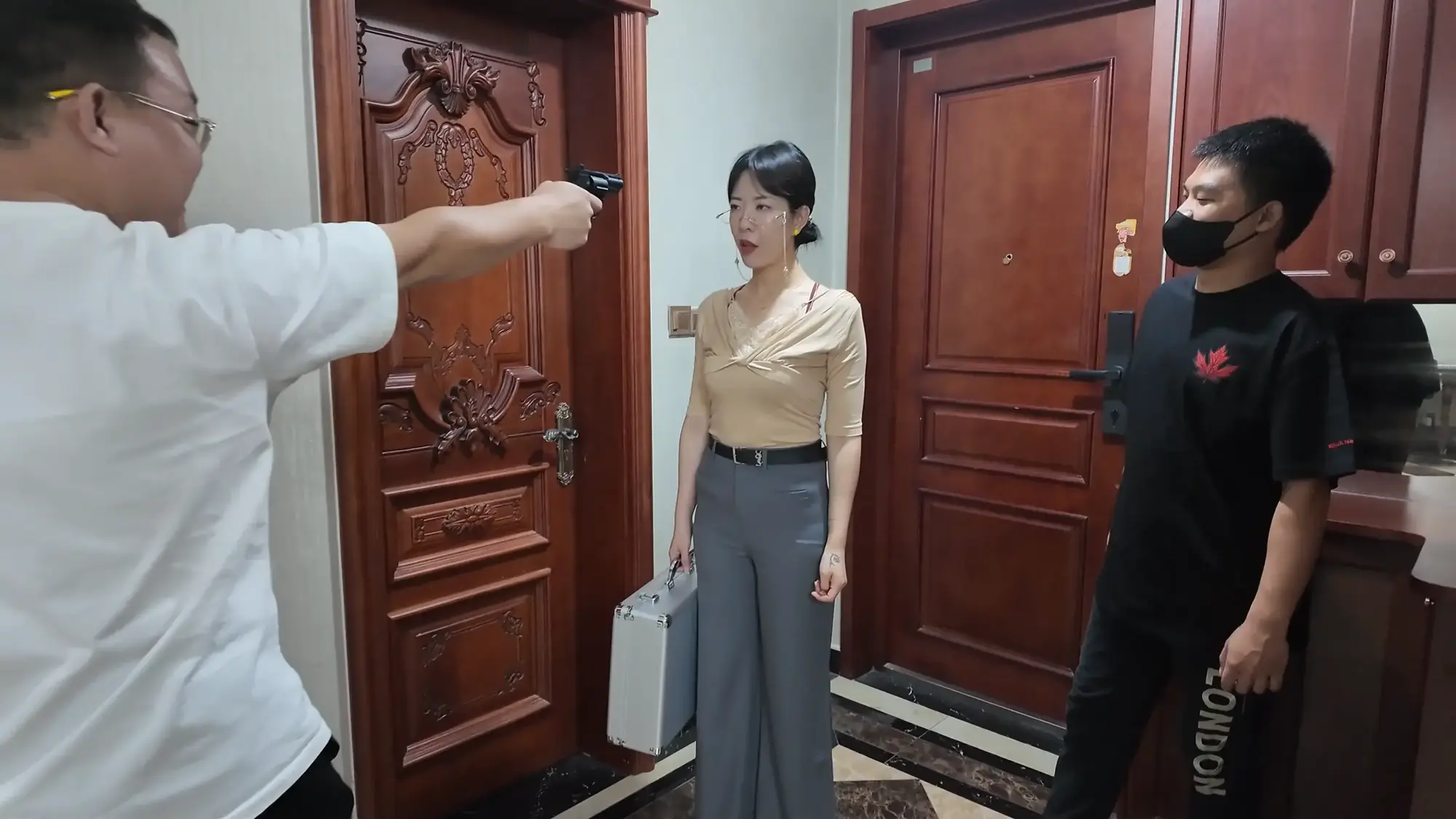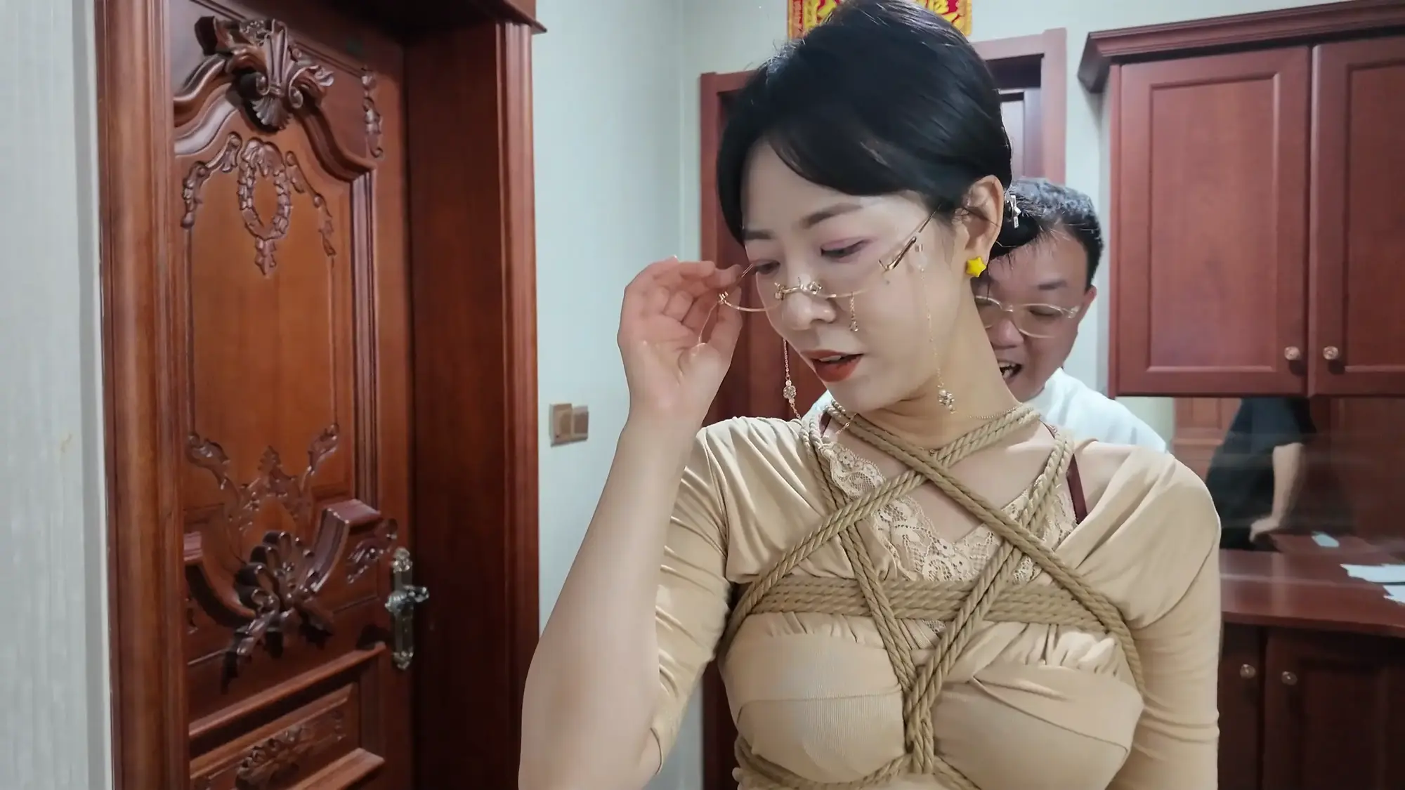 画面一转,e小姐出场(米粒扮演),她提着箱子边走边接起电话,电话另一边的老大命令e小姐拿到获取后就把卖家干掉,e小姐轻蔑一下说一定完成任务。e小姐与小弟会面,被小弟带上了楼。刚刚走进屋子,e小姐就察觉到了不对劲,并让躲在角落里的人出来。随后大哥拿着枪走了出来,夸奖e小姐是个狠角色并且还是个大美人,e小姐表示他们胆子不小敢黑吃黑,并告诉他们如果让自己的老大知道他们怎么死的都不知道。小弟不耐烦的让e小姐放下箱子,双手背后站在一边。e小姐淡定自若的照做,并用充满挑逗的口气说不开枪杀了自己,摆这个姿势是不是要绑。小弟验完钱后大哥回应e小姐本来是准备一枪干掉她的,但实在舍不得杀掉眼前的大美人,于是大哥命令小弟拿绳子去,将e小姐紧密捆绑了起来(捆绑过程全记录),捆绑的过程中e小姐不停挑逗眼前的两个男人,把两个人迷惑的神魂颠倒,但为了保险起见,大哥先让小弟把米粒关起来,慢慢料理她。