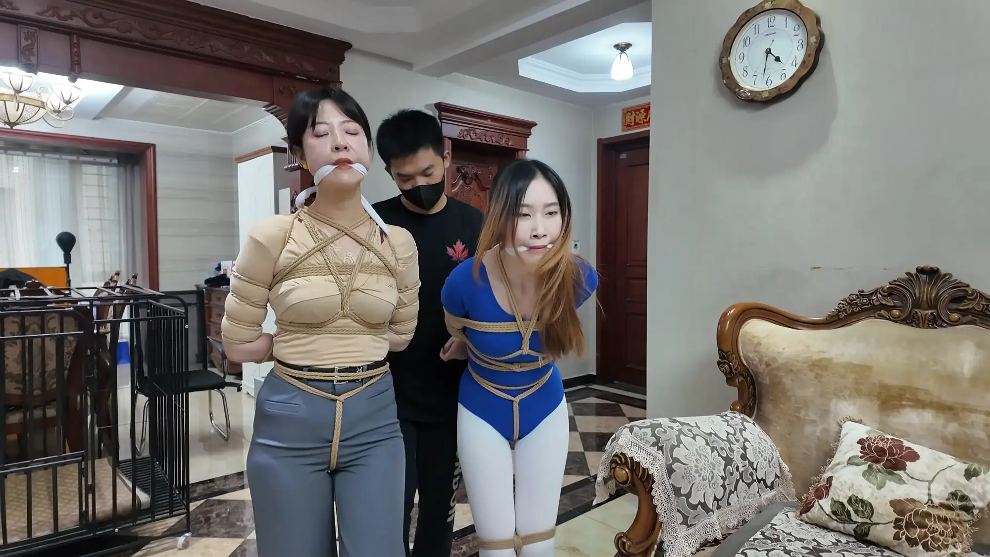 前情提要,南清探员逃跑失败,再次被雷姐的手下抓住,雷姐也被自己的手下背叛。此后,南清与雷姐被囚禁起来,两人分别被换上体操服与瑜伽服遭受折磨。某一日,南清被单腿吊缚,雷姐则是头戴马具,嘴塞口球,m字开腿坐在椅子上,两人照常被两个男人玩弄,小弟表示马上就要把她们卖掉有些舍不得,大哥告诉他自己准备黑吃黑,钱和人自己都要,并说利益最大化是雷姐教给自己的,看到雷姐依旧瞪着自己不肯屈服,大哥开始用力锤击雷姐的腹部,并拉扯雷姐的股绳教训她,一旁的南清也一样不服气,被拿掉口球后依旧放狠话要杀了他们,两个男人大笑嘲讽,小弟拿起鞭子开始教训南清。过了一会儿,大哥的手机发来买家的短信,他命令小弟把南清和雷姐捂晕关到卧室里,一切准备妥当后,大哥让小弟下去接人,自己做好偷袭的准备。