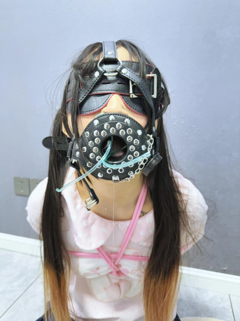 【头/面部拘束】:医用鼻管从鼻孔伸进去,从鼻腔穿过喉咙推到口腔伸出,然后从马具口枷伸出来。试过的都知道,鼻管的难受硬核程度是鼻钩的几十倍!放大声音可以听到妹子喉咙里因为鼻管刺激的咕噜声~