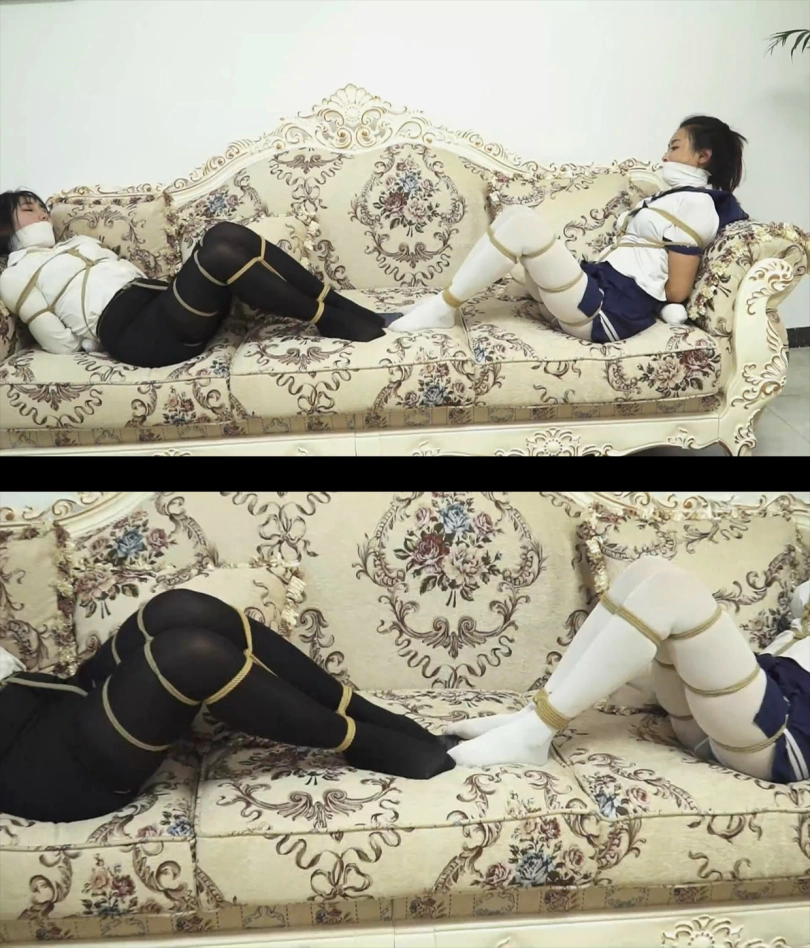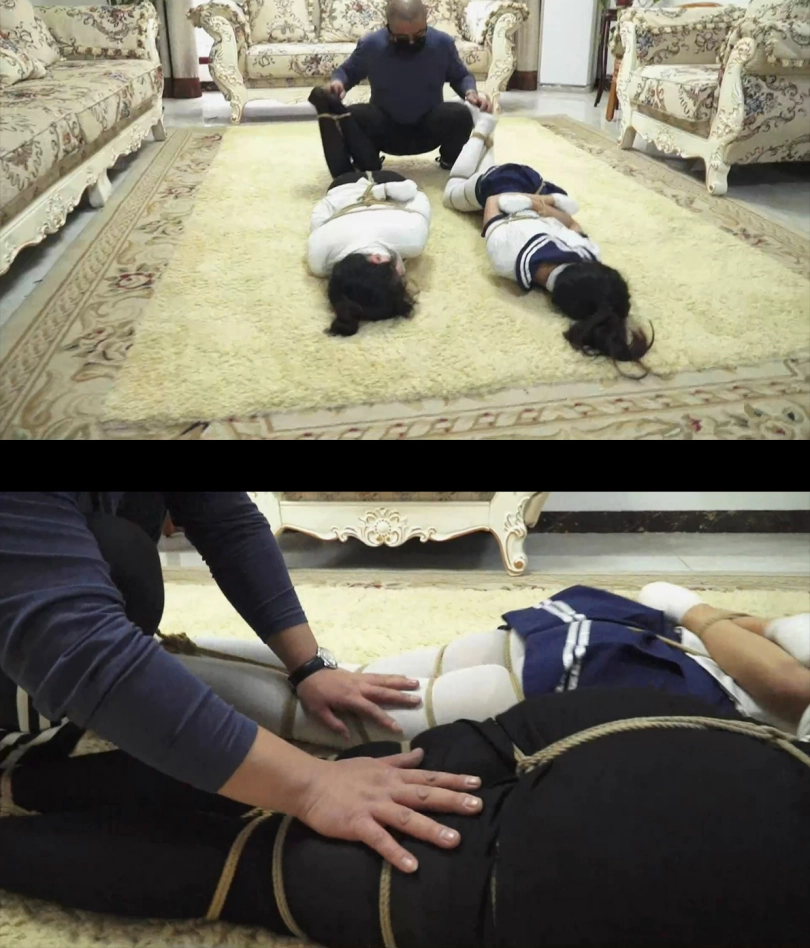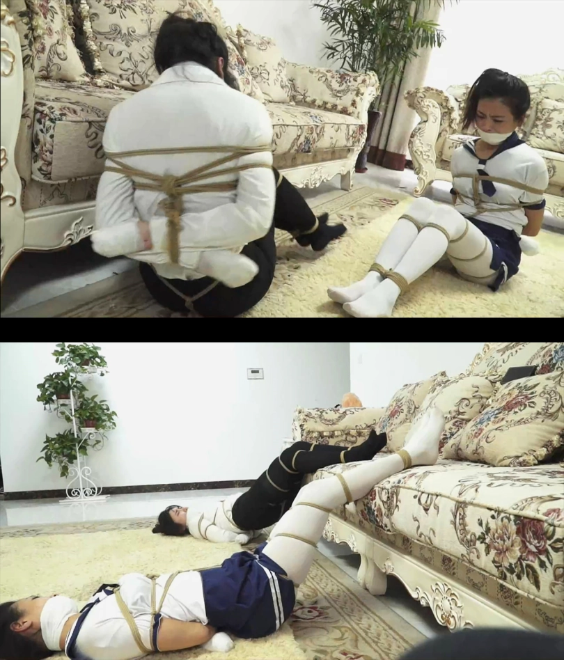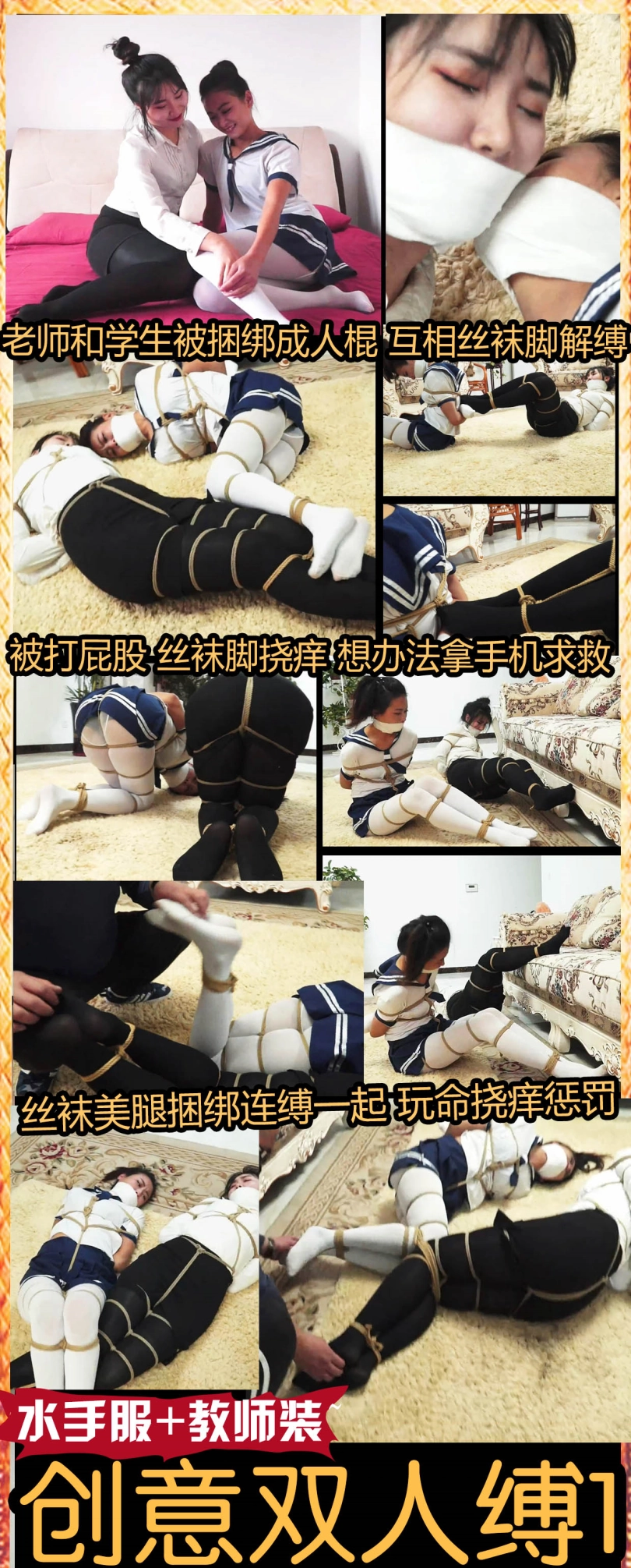 【逍遥】《创意双人缚01》美丽黑丝教师+白丝水手服美女 吴晗+夏炎捆绑蹂躏 挠痒丝袜美脚打屁股 连缚捆绑