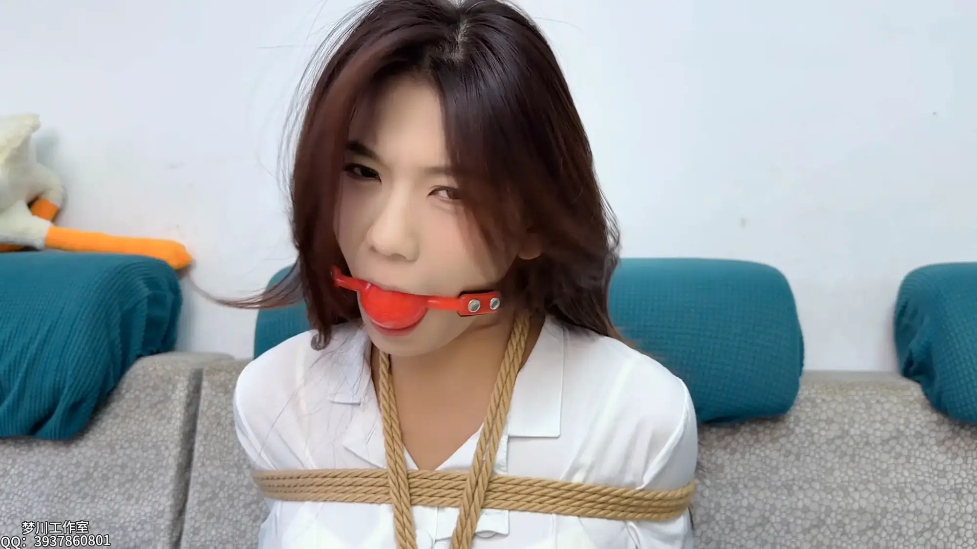口径稍大的口球让她不得不张大了嘴巴,难受至极,