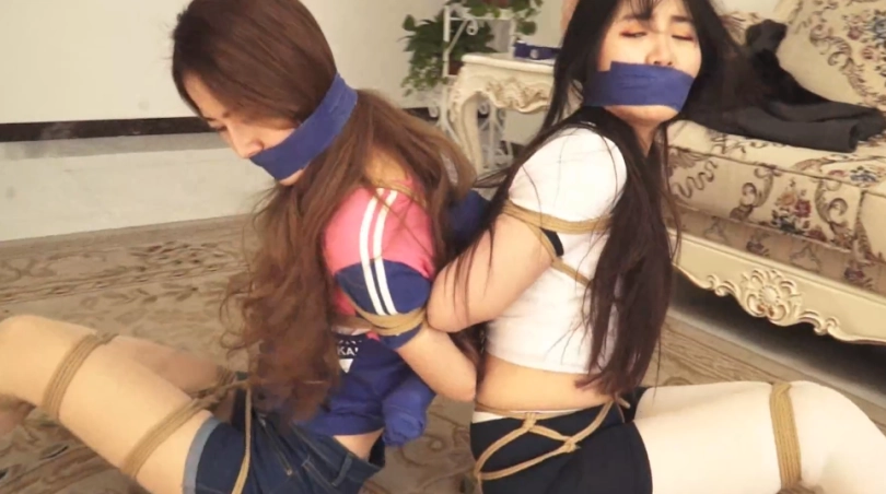 绑完之后,老王开始玩弄韩毅,说到,这个妞真带劲。便挠他脚心,摸她腿。过了一会男人走后,两姐妹开始了剧烈的挣扎,想相互合作解开绳子,两个美女想用嘴巴解开对方的嘴,又想有手解开对方的绳子,但是,最终也没有什么作用。不久,韩毅太累了,便睡着了,